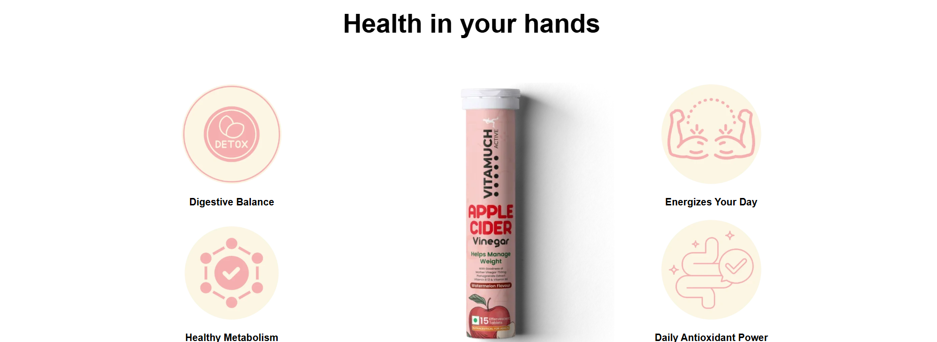 Experience a refreshing way to support your wellness goals with Vitamuch Apple Cider Vinegar—Watermelon Flavor. Each fizzy serving combines 750 mg of ACV with the Mother and 100 mg of pomegranate extract to promote healthy weight management, aid digestion, and help detox your system. Enjoy boosted metabolism, reduced bloating, and clean, lasting energy—all without the harsh taste of vinegar. Discover daily wellness in a delicious, fruity fizz!