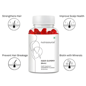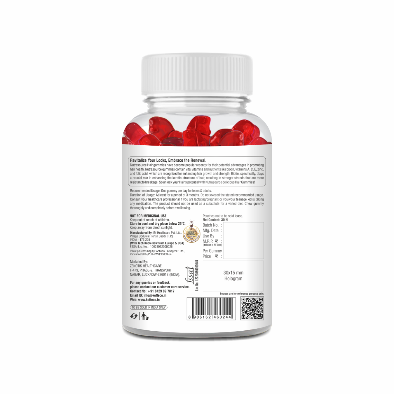 Nutrasource Hair Nourish Gummies are a delicious and convenient way to support the health and vitality of your hair. These strawberry-flavored gummies are packed with essential vitamins and minerals, including Biotin, Vitamin C, and Vitamin E, which work together to strengthen your hair from within.