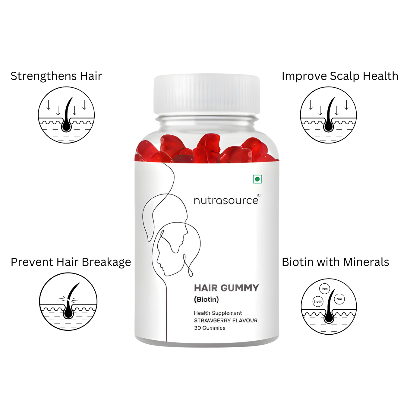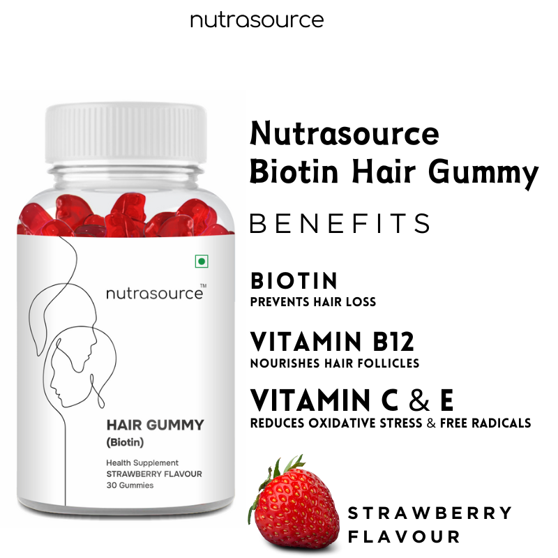 Nutrasource Biotin Hair Growth Gummies for Men & Women | Infused with Vitamin B12, C & E