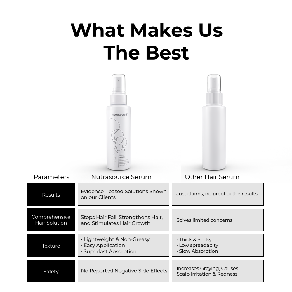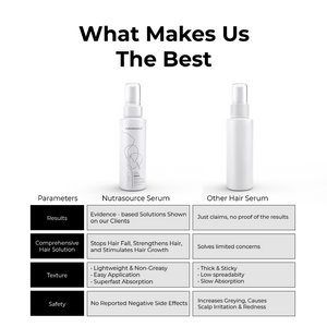Rejuvenate your hair with Nutrasource Hair Growth Serum—formulated for both men and women to support stronger, fuller hair from root to tip. Our unique serum nourishes and strengthens hair follicles, encouraging a visible increase in thickness and vitality with consistent use.