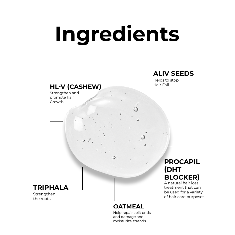 1. Cashew Nut Extract (Anacardium Occidentale) the hero ingredient which is packed with Biotin, Folic acid, Zeaxanthin,Vitamin K, B, Tocopherol which is helpful in Prevention of Hair Loss & accelarationof Blood Flow.