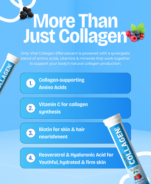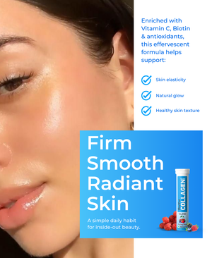 OnlyVital Collagen Builder Effervescent Tablets deliver a scientifically formulated blend designed to support your skin's structural integrity. Each tablet combines Amla Extract and Vitamin C for antioxidant protection, while glycine, L-lysine, and L-proline provide essential amino acids that form collagen's backbone. Hyaluronic acid enhances hydration retention, resveratrol offers cellular defense, and biotin strengthens skin resilience. L-leucine supports protein synthesis, while Vitamin E completes the formula with additional antioxidant benefits. Simply dissolve in water for convenient daily supplementation targeting skin elasticity and radiance from within.