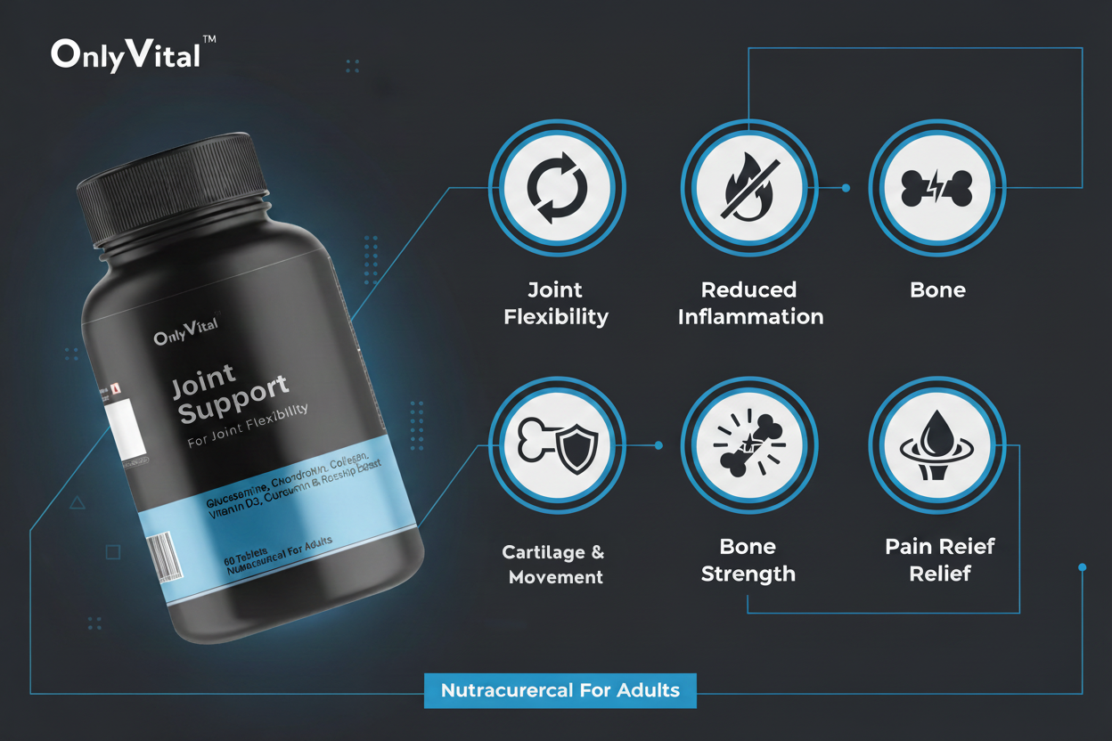 Easy-to-take tablets designed for daily joint care. Make OnlyVital Joint Support part of your wellness routine and experience improved mobility and flexibility.