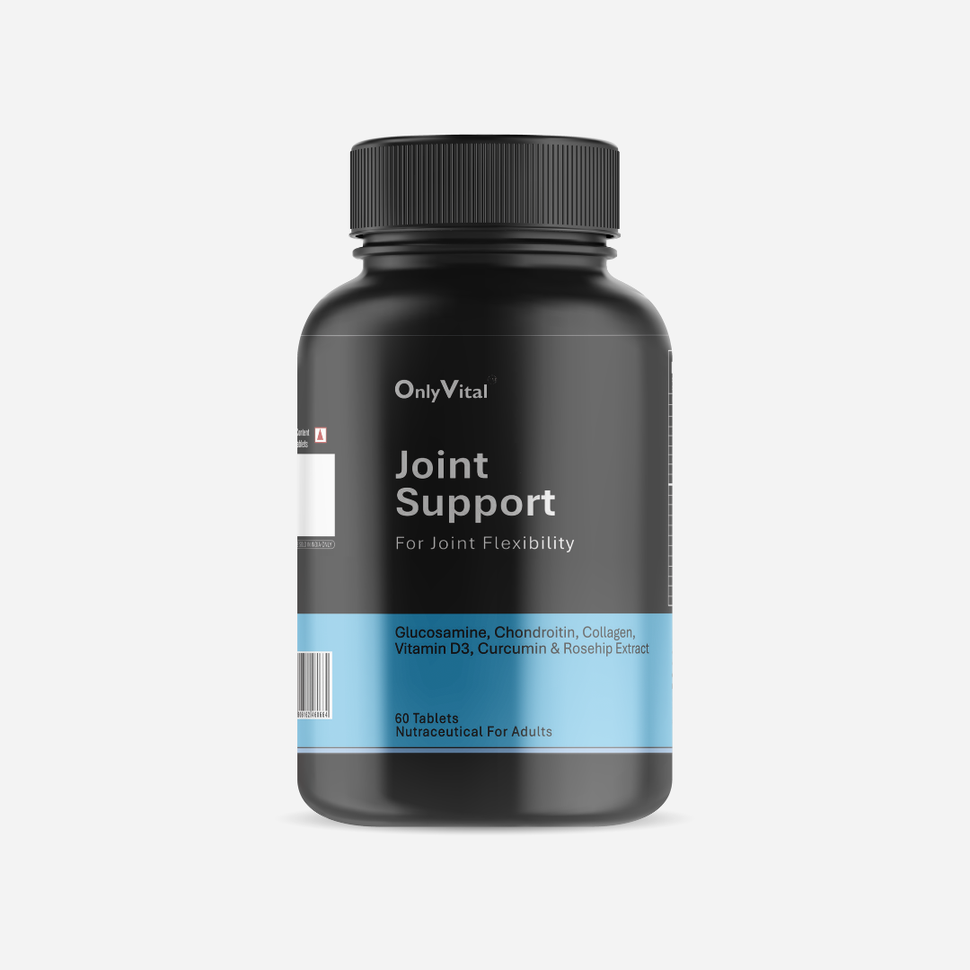 OnlyVital Joint Support Tablets are formulated with a powerful blend of Glucosamine, Chondroitin, and Hyaluronic Acid to support healthy joints and maintain flexibility. These essential nutrients work together to promote cartilage health and reduce joint stress, helping you move with ease and confidence.