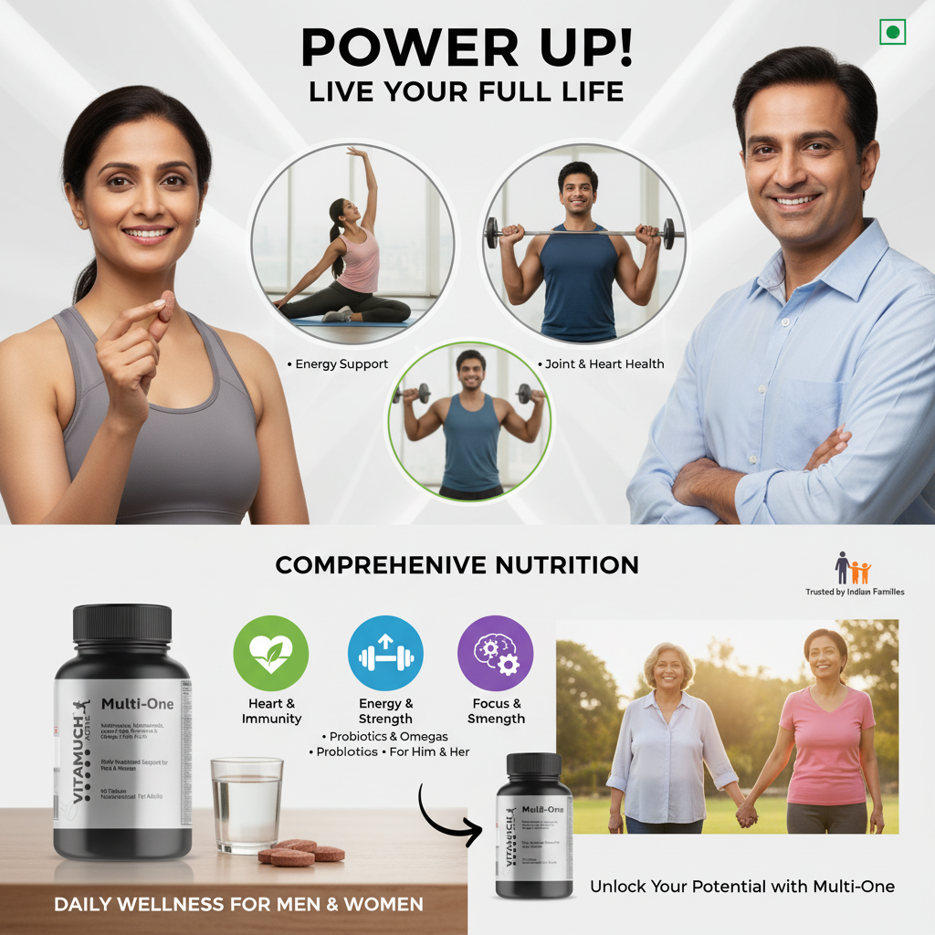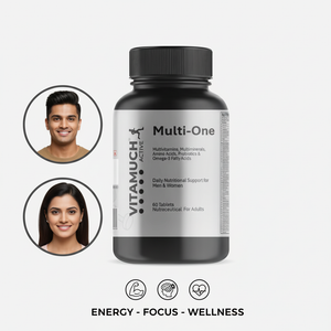 Vitamuch Multi-One is a comprehensive daily supplement designed to support overall health and wellness for both men and women. Each tablet combines essential multivitamins and minerals with added omega-3 fatty acids, amino acids, and probiotics to create a complete nutritional formula.